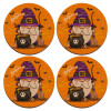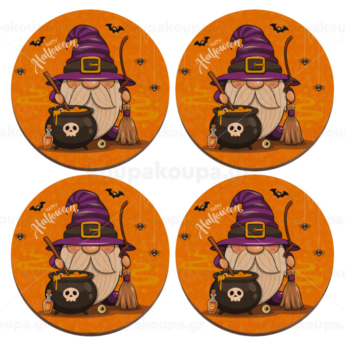 Happy Halloween (Χαλοουίν), ΣΕΤ x4 Σουβέρ ξύλινα στρογγυλά plywood (9cm)