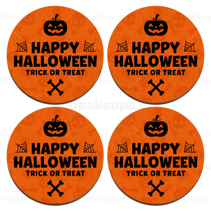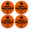 Happy Halloween pumpkin, ΣΕΤ x4 Σουβέρ ξύλινα στρογγυλά plywood (9cm)