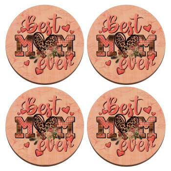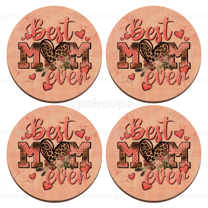 Best mom ever Mother's Day, ΣΕΤ x4 Σουβέρ ξύλινα στρογγυλά plywood (9cm)