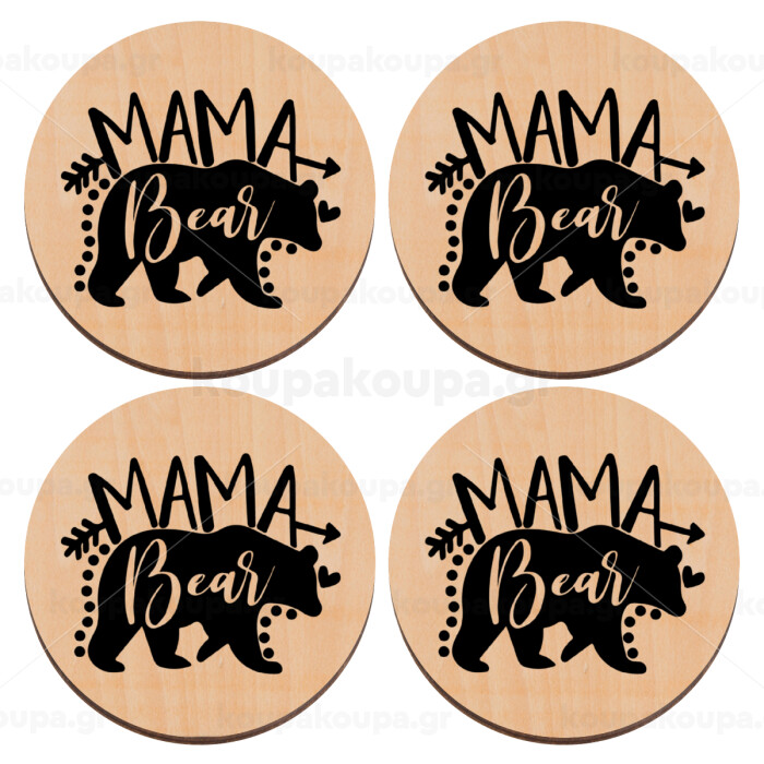 Mama Bear, ΣΕΤ x4 Σουβέρ ξύλινα στρογγυλά plywood (9cm)