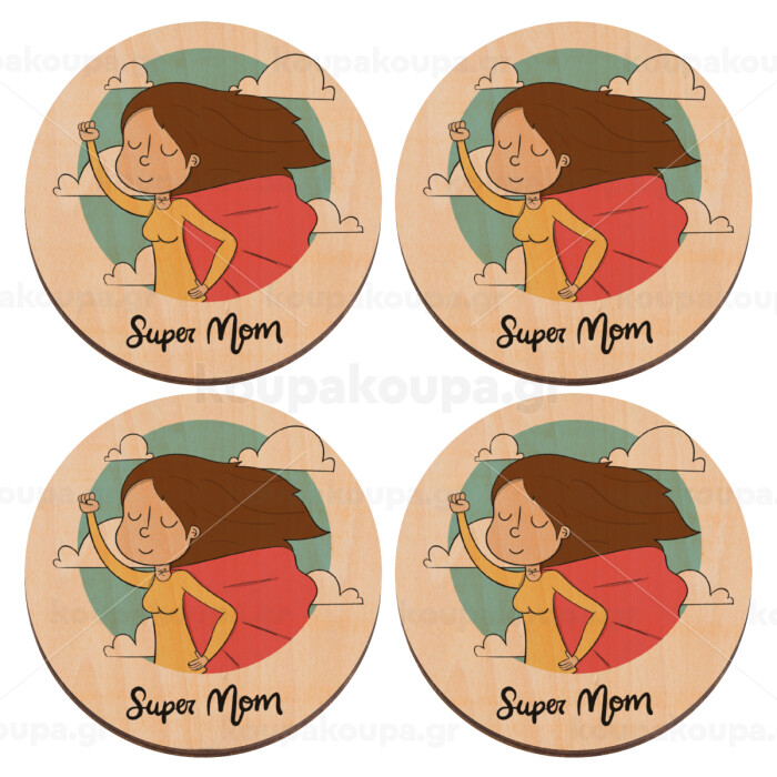 Super mom, ΣΕΤ x4 Σουβέρ ξύλινα στρογγυλά plywood (9cm)