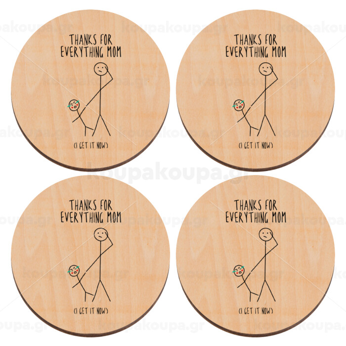 Thanks for everything mom, ΣΕΤ x4 Σουβέρ ξύλινα στρογγυλά plywood (9cm)