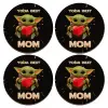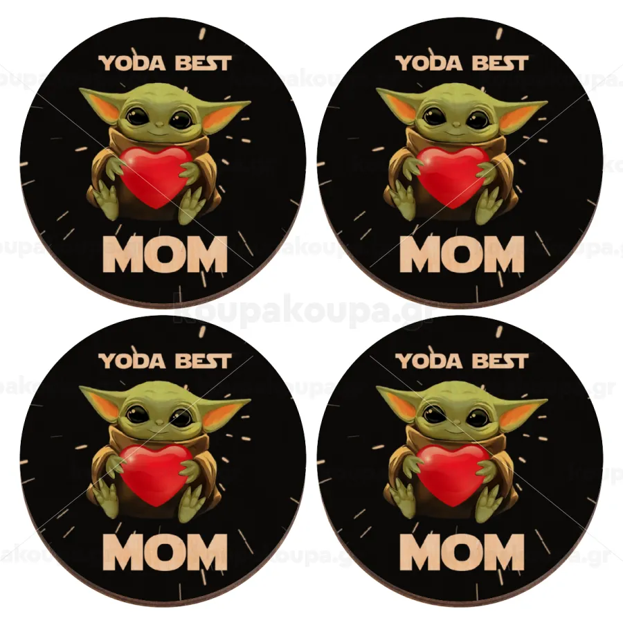 Yoda Best mom, ΣΕΤ x4 Σουβέρ ξύλινα στρογγυλά plywood (9cm)