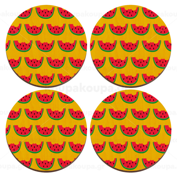Καρπουζάκια, ΣΕΤ x4 Σουβέρ ξύλινα στρογγυλά plywood (9cm)