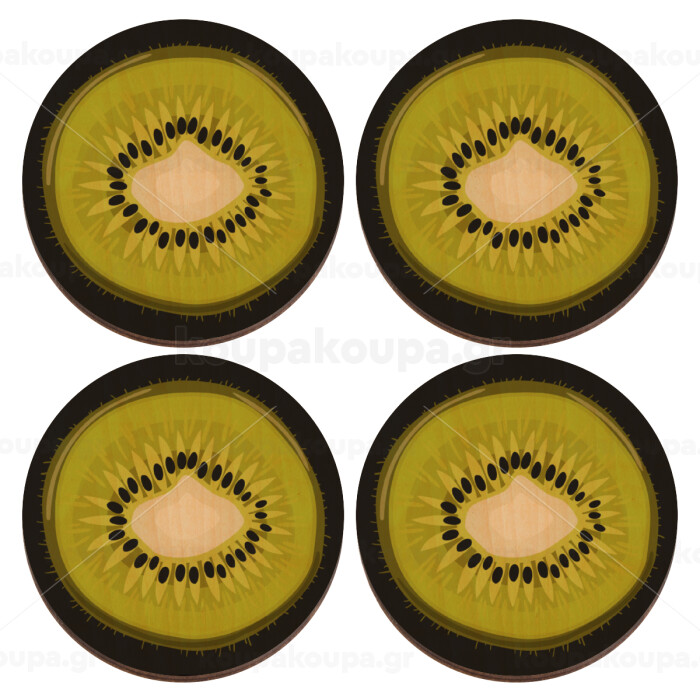 Kiwi, ΣΕΤ x4 Σουβέρ ξύλινα στρογγυλά plywood (9cm)