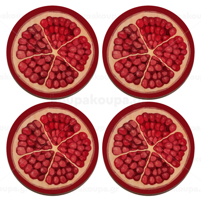 pomegranate, ΣΕΤ x4 Σουβέρ ξύλινα στρογγυλά plywood (9cm)
