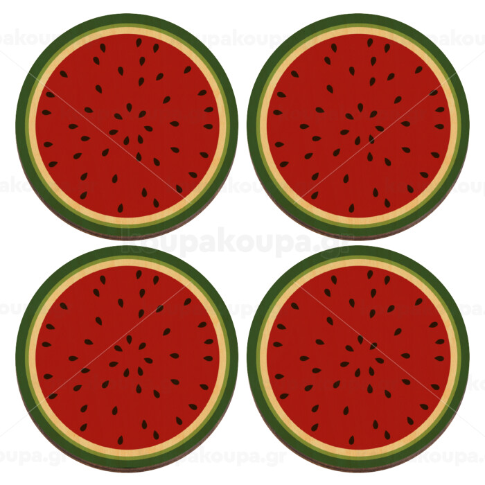 Watermelon, ΣΕΤ x4 Σουβέρ ξύλινα στρογγυλά plywood (9cm)