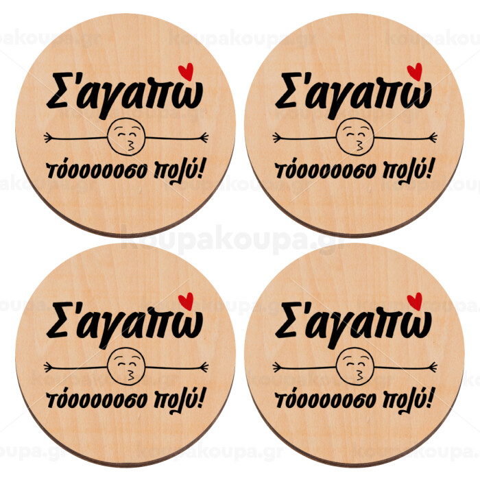 Σ΄ αγαπώ τόοοοοοσο πολύ!!!, ΣΕΤ x4 Σουβέρ ξύλινα στρογγυλά plywood (9cm)