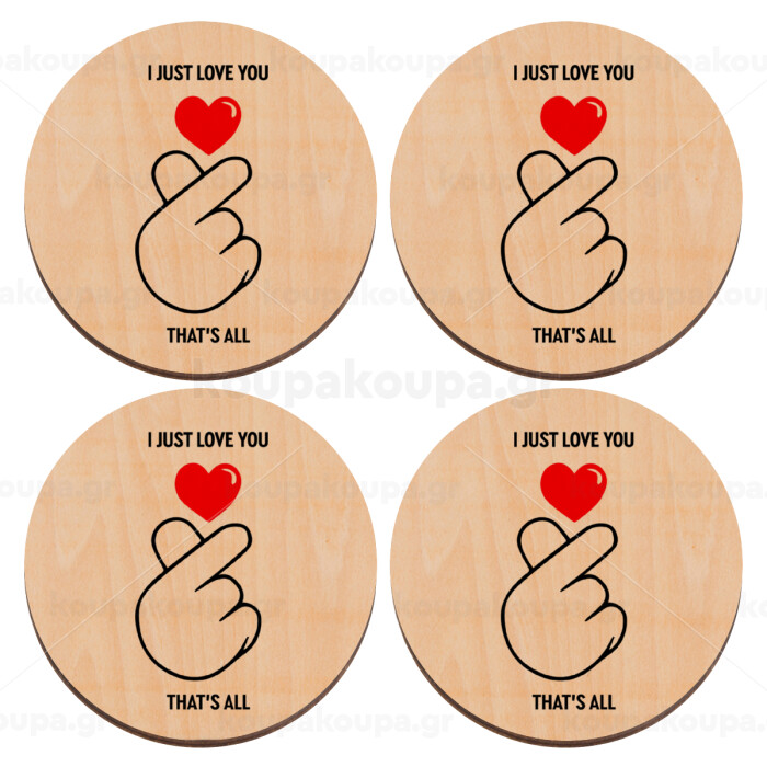 I just love you, that's all., ΣΕΤ x4 Σουβέρ ξύλινα στρογγυλά plywood (9cm)