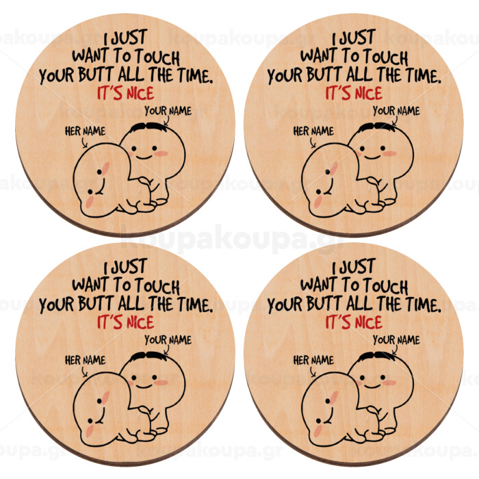 I Just Want To Touch Your Butt All The Time, ΣΕΤ x4 Σουβέρ ξύλινα στρογγυλά plywood (9cm)