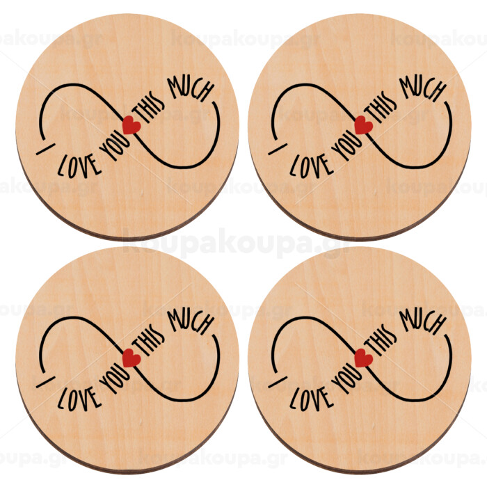 I Love you thisssss much (infinity), ΣΕΤ x4 Σουβέρ ξύλινα στρογγυλά plywood (9cm)