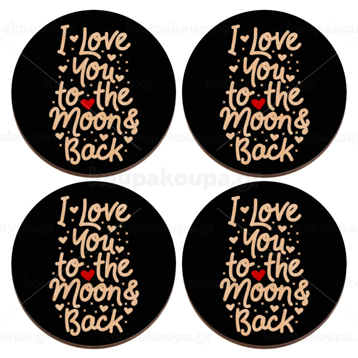 I love you to the moon and back with hearts, ΣΕΤ x4 Σουβέρ ξύλινα στρογγυλά plywood (9cm)