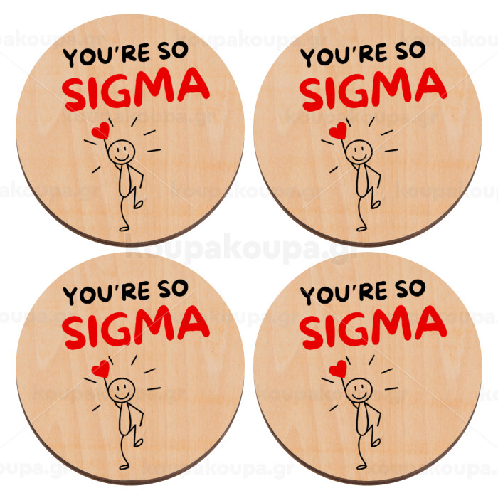 Sigma Valentine's Day , ΣΕΤ x4 Σουβέρ ξύλινα στρογγυλά plywood (9cm)