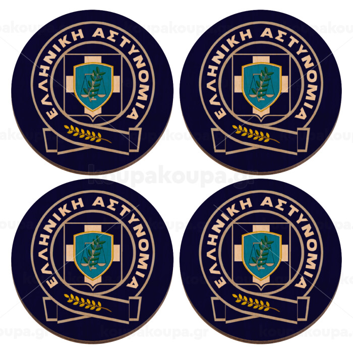Ελληνική Αστυνομία, ΣΕΤ x4 Σουβέρ ξύλινα στρογγυλά plywood (9cm)