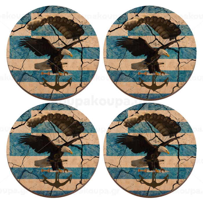 Hellas army αετός, ΣΕΤ x4 Σουβέρ ξύλινα στρογγυλά plywood (9cm)