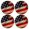 USA Flag, ΣΕΤ x4 Σουβέρ ξύλινα στρογγυλά plywood (9cm)