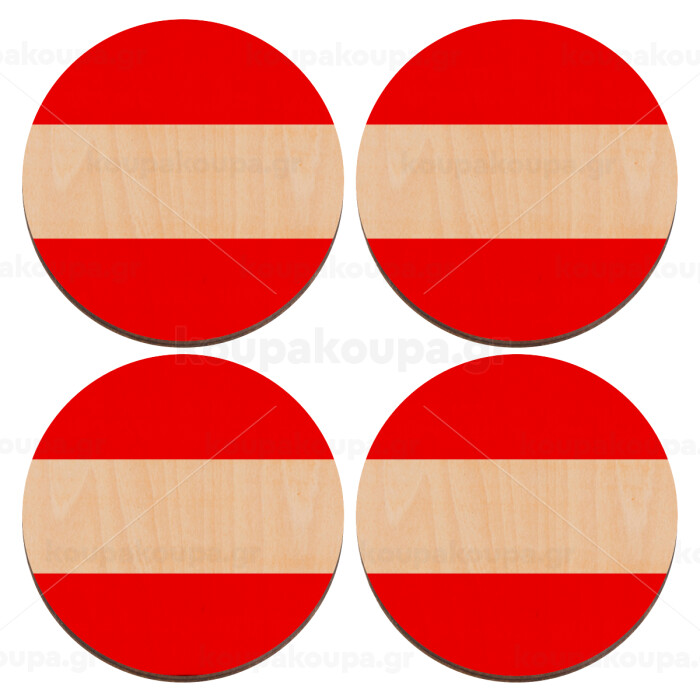 Austria flag, ΣΕΤ x4 Σουβέρ ξύλινα στρογγυλά plywood (9cm)