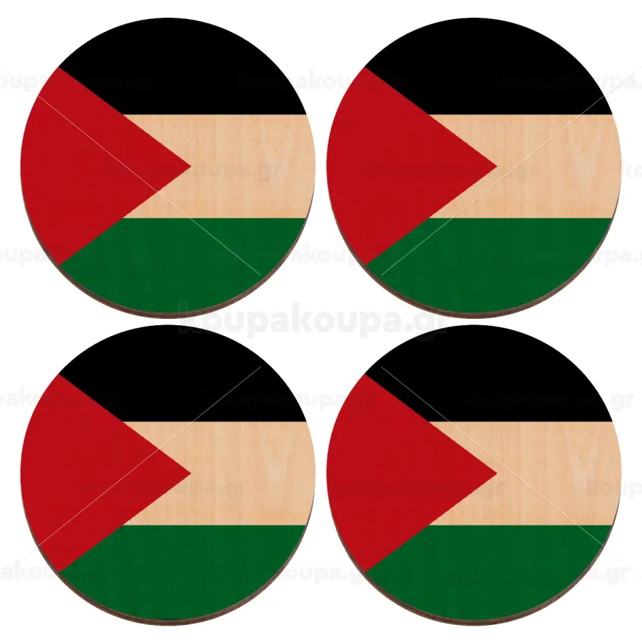 Palestine Flag, ΣΕΤ x4 Σουβέρ ξύλινα στρογγυλά plywood (9cm)