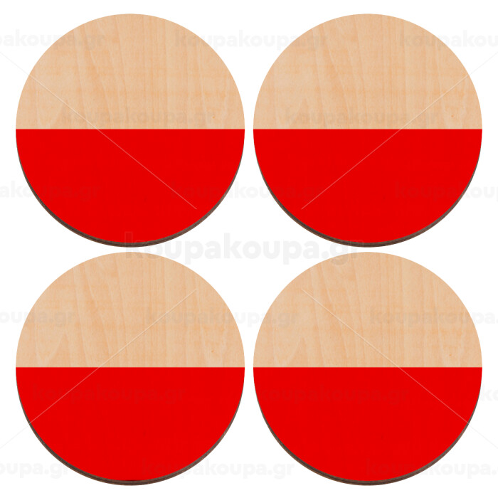Poland flag, ΣΕΤ x4 Σουβέρ ξύλινα στρογγυλά plywood (9cm)