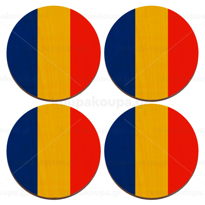 Romania flag, ΣΕΤ x4 Σουβέρ ξύλινα στρογγυλά plywood (9cm)