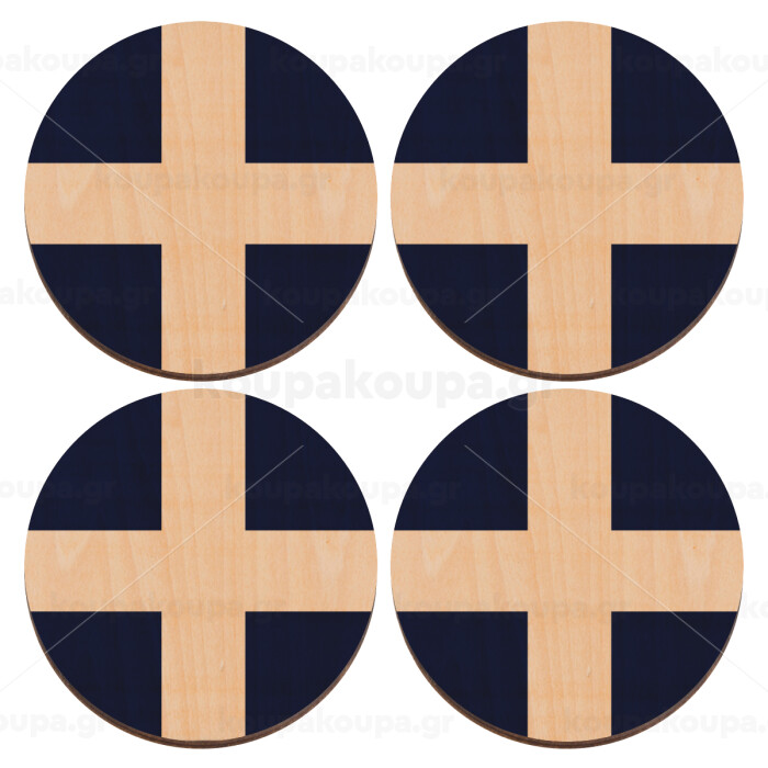 Ελληνική σημαία, Hellas, ΣΕΤ x4 Σουβέρ ξύλινα στρογγυλά plywood (9cm)