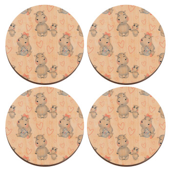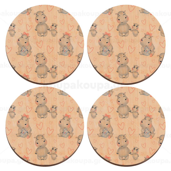 Hippo, ΣΕΤ x4 Σουβέρ ξύλινα στρογγυλά plywood (9cm)