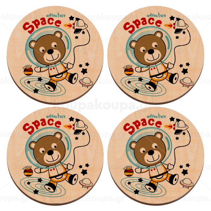Kids Space, ΣΕΤ x4 Σουβέρ ξύλινα στρογγυλά plywood (9cm)