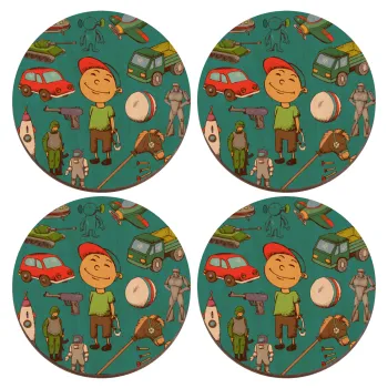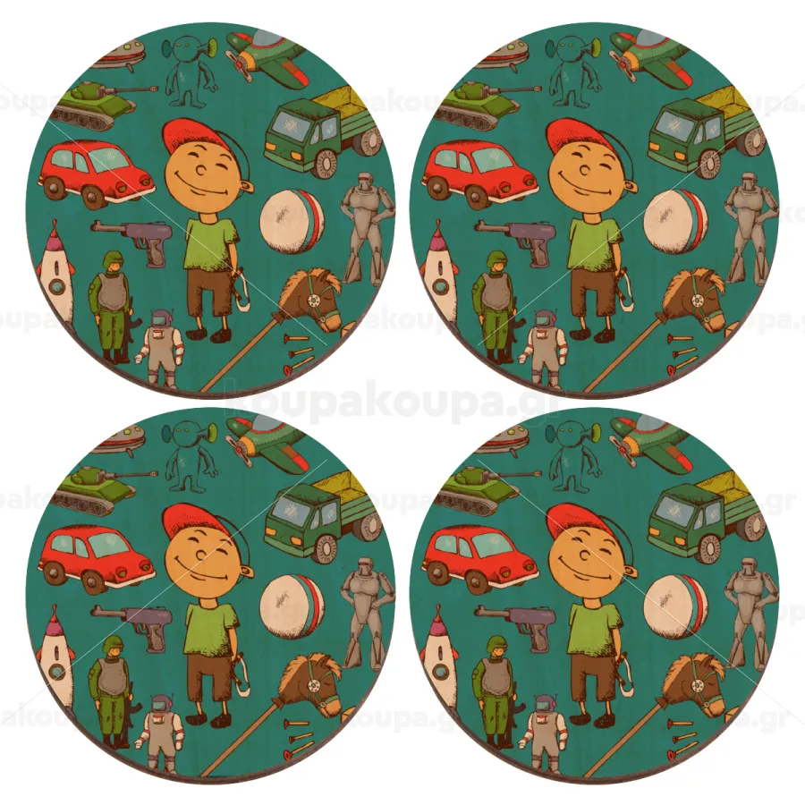 Toys Boy, ΣΕΤ x4 Σουβέρ ξύλινα στρογγυλά plywood (9cm)