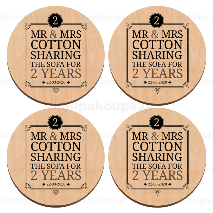 Mr & Mrs Sharing the sofa, ΣΕΤ x4 Σουβέρ ξύλινα στρογγυλά plywood (9cm)