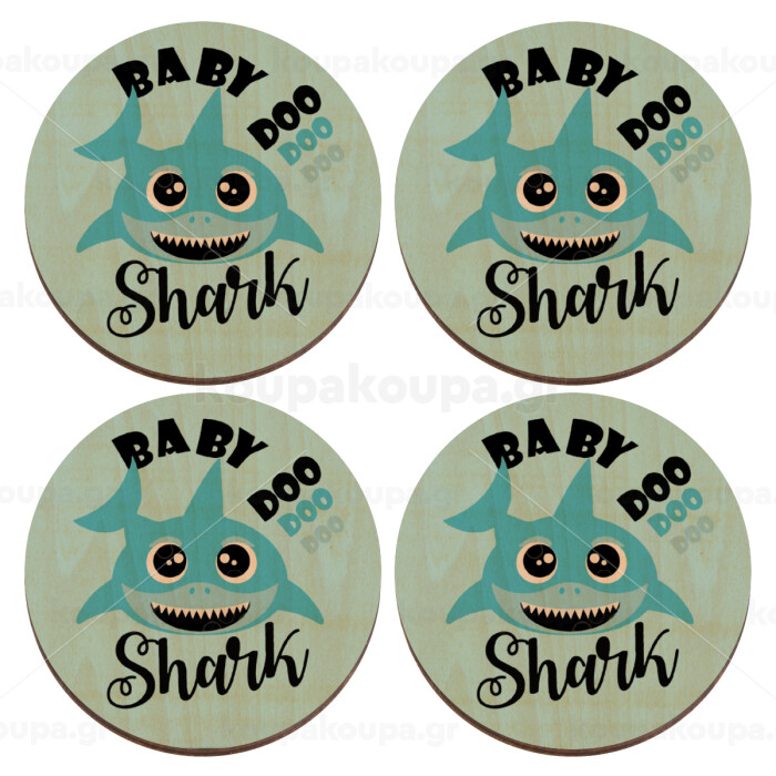 Baby Shark (boy), ΣΕΤ x4 Σουβέρ ξύλινα στρογγυλά plywood (9cm)