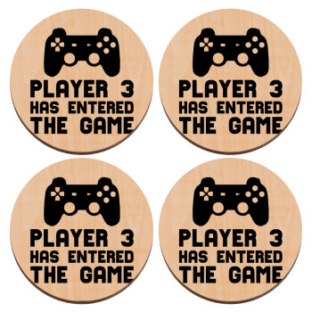 Player 3 has entered the Game, ΣΕΤ x4 Σουβέρ ξύλινα στρογγυλά plywood (9cm)