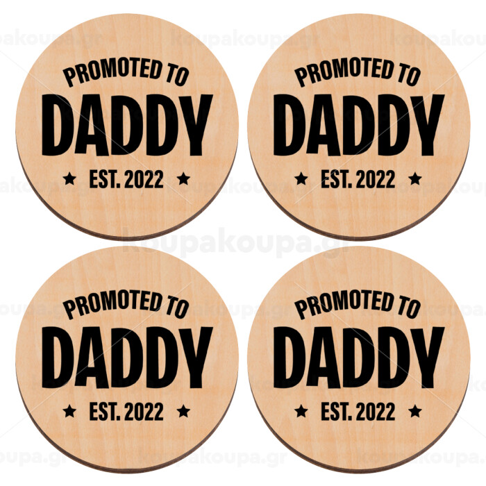Promoted to Daddy, ΣΕΤ x4 Σουβέρ ξύλινα στρογγυλά plywood (9cm)