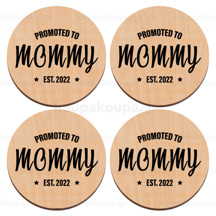 Promoted to Mommy, ΣΕΤ x4 Σουβέρ ξύλινα στρογγυλά plywood (9cm)