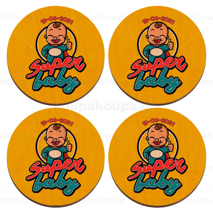 Super baby., ΣΕΤ x4 Σουβέρ ξύλινα στρογγυλά plywood (9cm)