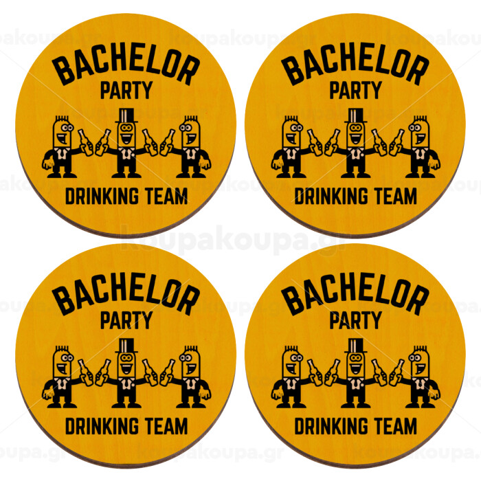 Bachelor Party Drinking Team, ΣΕΤ x4 Σουβέρ ξύλινα στρογγυλά plywood (9cm)