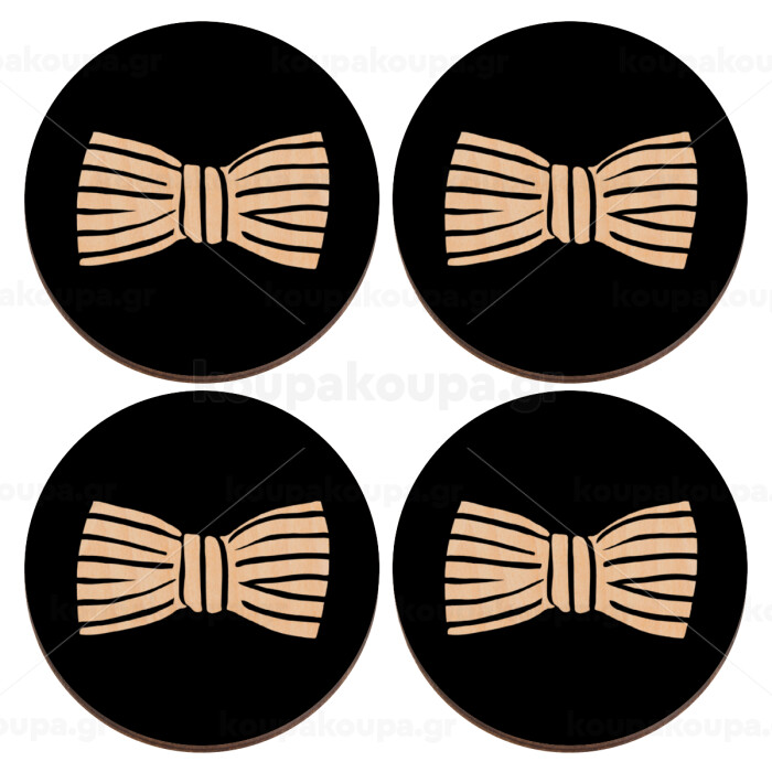 Bow tie, ΣΕΤ x4 Σουβέρ ξύλινα στρογγυλά plywood (9cm)