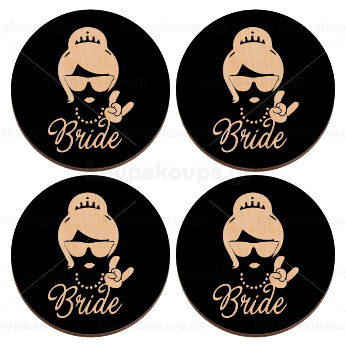 Bride hands, ΣΕΤ x4 Σουβέρ ξύλινα στρογγυλά plywood (9cm)