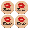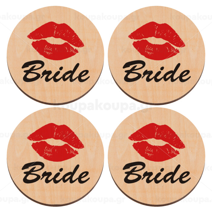 Bride kiss, ΣΕΤ x4 Σουβέρ ξύλινα στρογγυλά plywood (9cm)