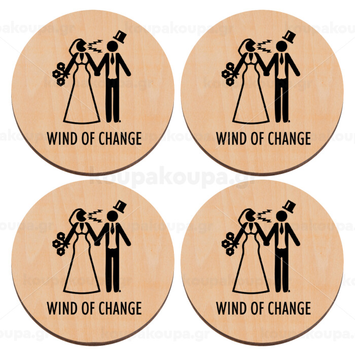Couple Wind of Change, ΣΕΤ x4 Σουβέρ ξύλινα στρογγυλά plywood (9cm)