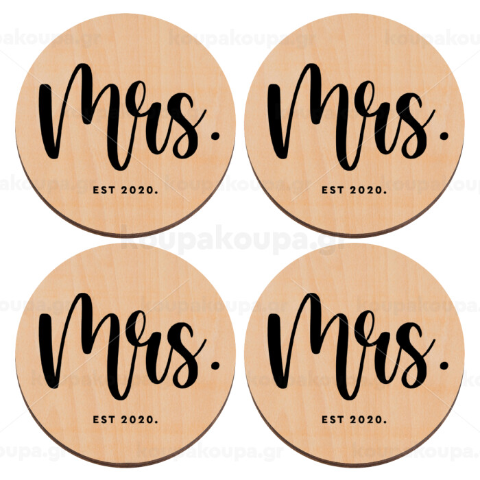 Mr & Mrs (Mrs), ΣΕΤ x4 Σουβέρ ξύλινα στρογγυλά plywood (9cm)
