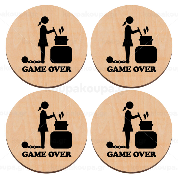 Woman Game Over, ΣΕΤ x4 Σουβέρ ξύλινα στρογγυλά plywood (9cm)