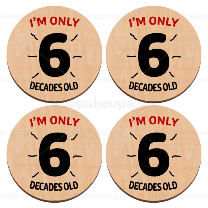 I'm only NUMBER decades OLD, ΣΕΤ x4 Σουβέρ ξύλινα στρογγυλά plywood (9cm)