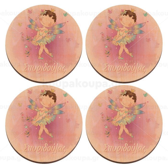 Η νονά μου, Νεράϊδα, ΣΕΤ x4 Σουβέρ ξύλινα στρογγυλά plywood (9cm)