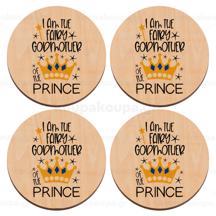 I am the fairy Godmother of the Prince, ΣΕΤ x4 Σουβέρ ξύλινα στρογγυλά plywood (9cm)