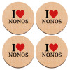I Love ΝΟΝΟΣ, ΣΕΤ x4 Σουβέρ ξύλινα στρογγυλά plywood (9cm)