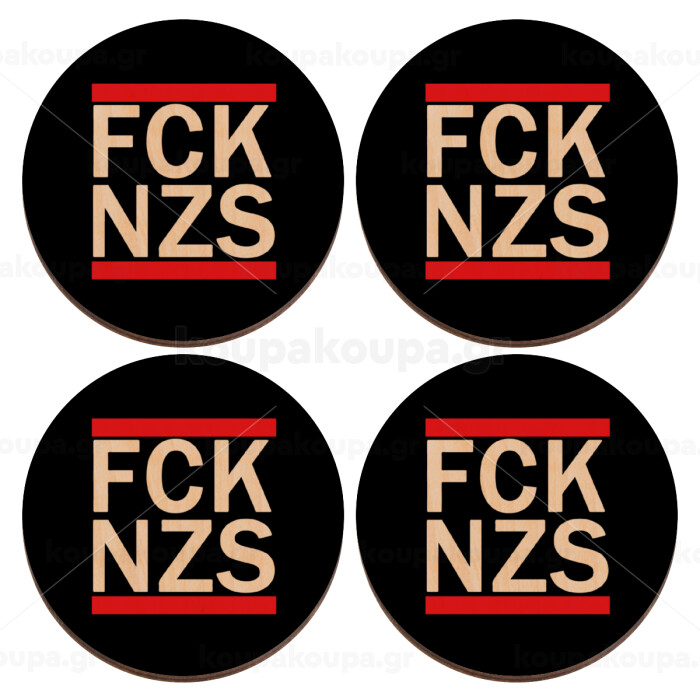 FCK NZS, ΣΕΤ x4 Σουβέρ ξύλινα στρογγυλά plywood (9cm)