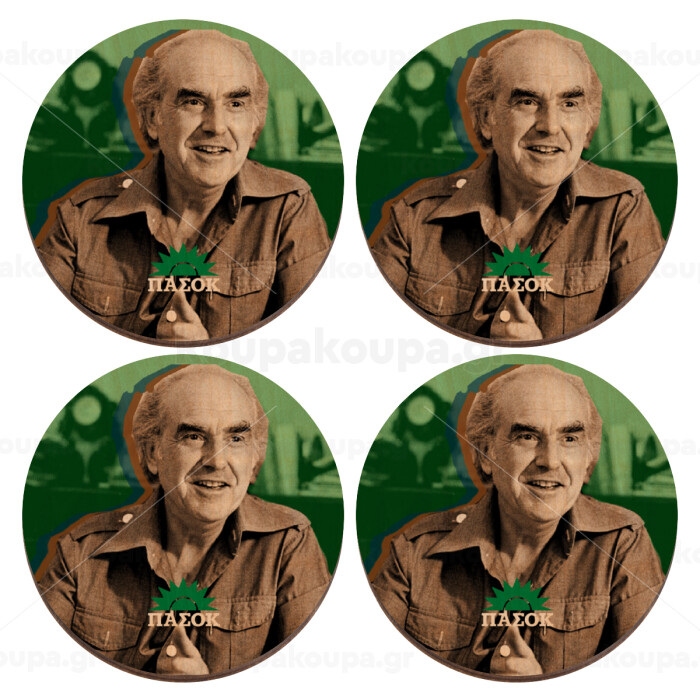 ΠΑΣΟΚ Ανδρέας Παπανδρέου, ΣΕΤ x4 Σουβέρ ξύλινα στρογγυλά plywood (9cm)