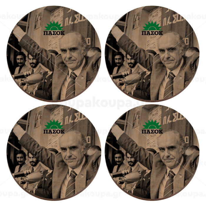 ΠΑΣΟΚ Ανδρέας, ΣΕΤ x4 Σουβέρ ξύλινα στρογγυλά plywood (9cm)