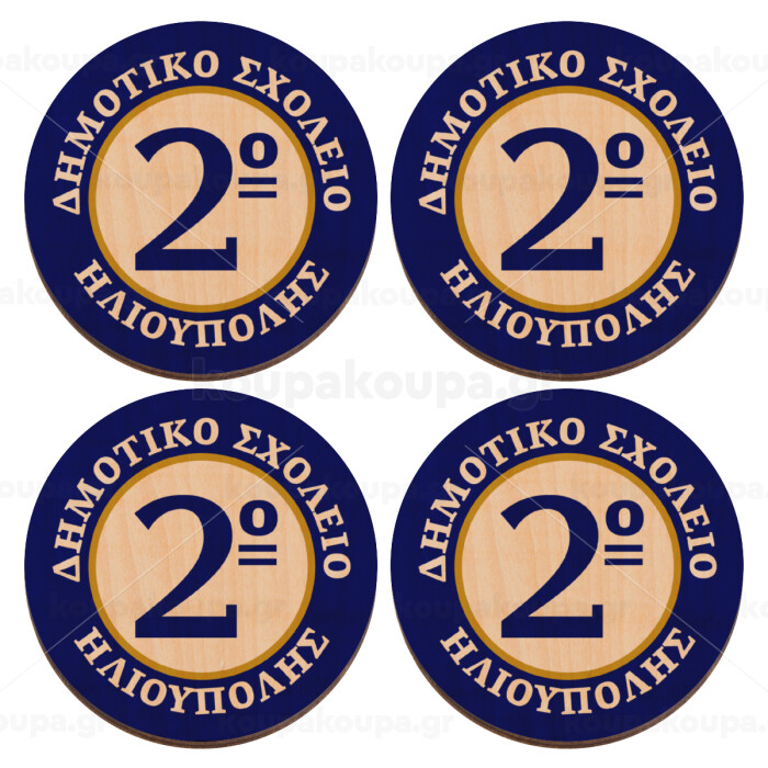 Έμβλημα Σχολικό μπλε/χρυσό, ΣΕΤ x4 Σουβέρ ξύλινα στρογγυλά plywood (9cm)