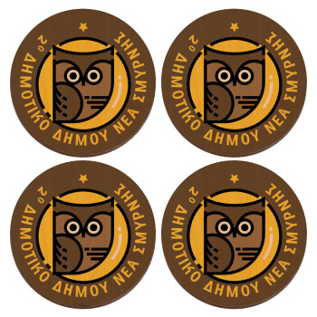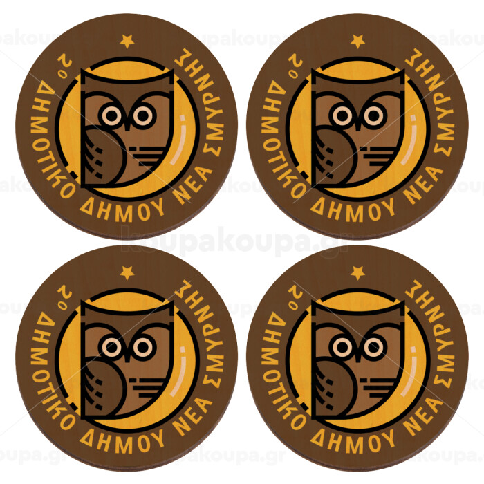 Έμβλημα Σχολικό brown, ΣΕΤ x4 Σουβέρ ξύλινα στρογγυλά plywood (9cm)